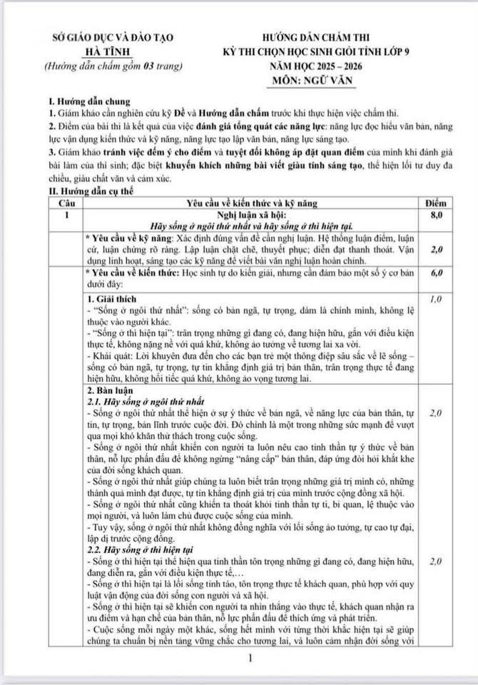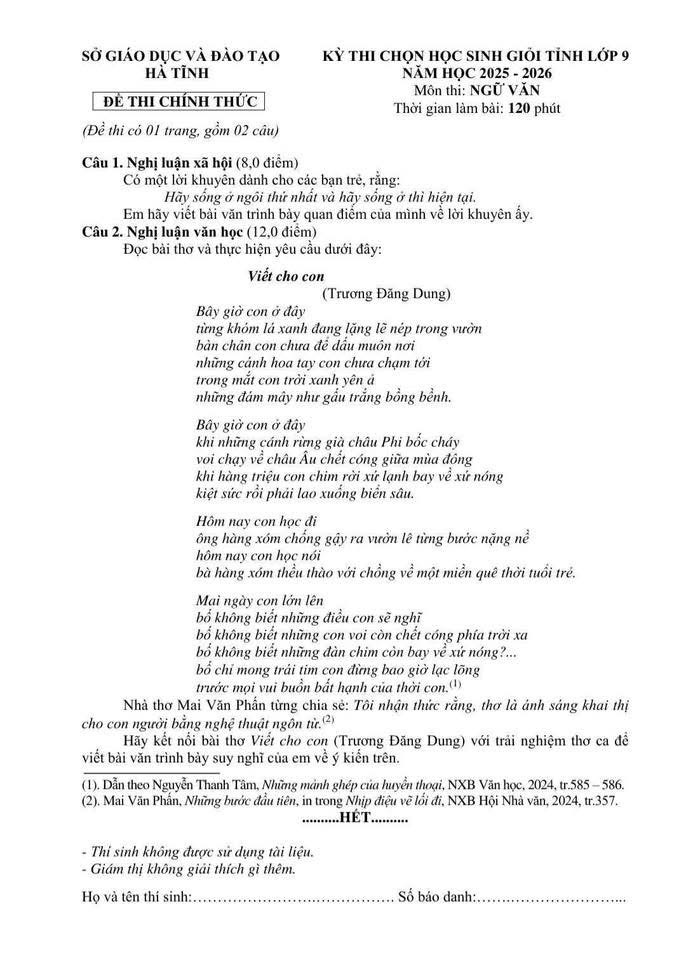 Đề thi chọn Học sinh giỏi thành phố & chọn đội tuyển Học sinh giỏi dự thi quốc gia môn Ngữ văn của Hà Nội năm học 2025 - 2026 (Bảng B - Chuyên)