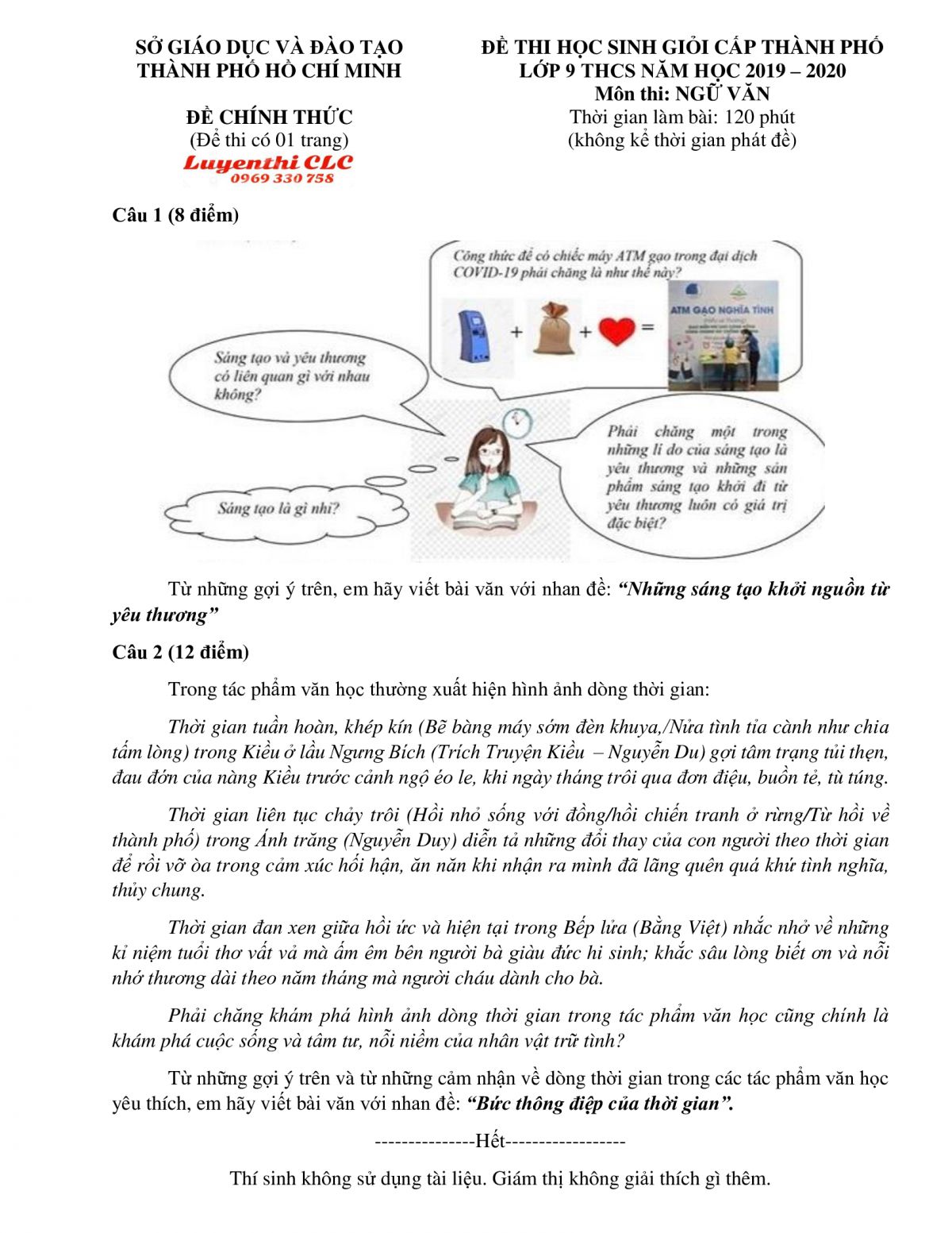 Đề thi chọn HSG môn Ngữ Văn lớp 9 huyện Văn Bàn, tỉnh Sơn La năm 2020