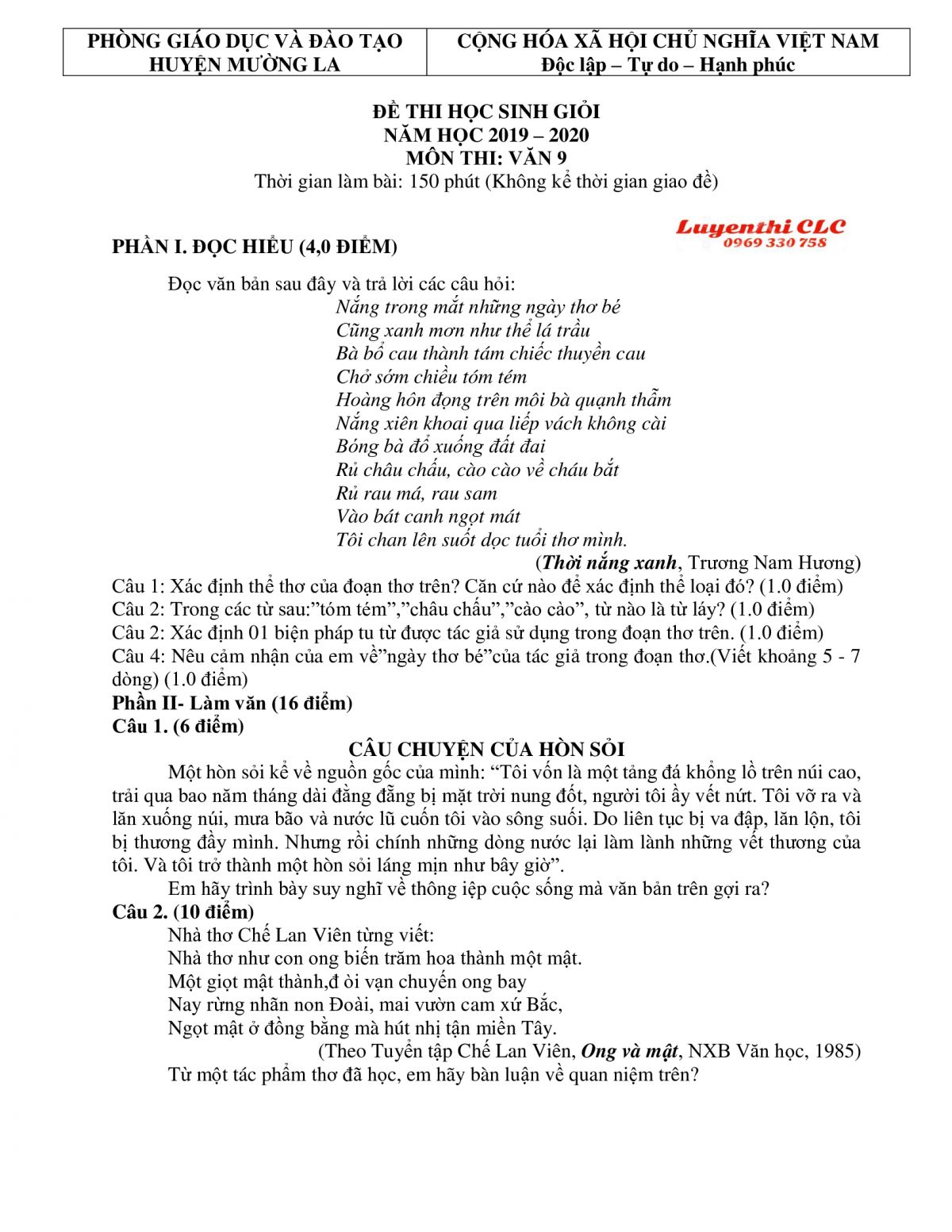 Đề thi thử tốt nghiệp THPT lần thứ nhất môn Ngữ Văn tỉnh Sơn La năm 2021