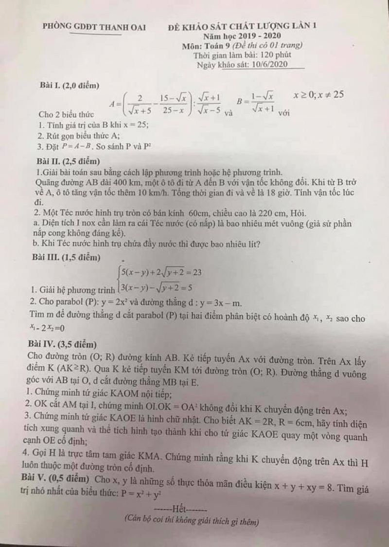 Đề thi tốt nghiệp THPT môn Toán năm 2020