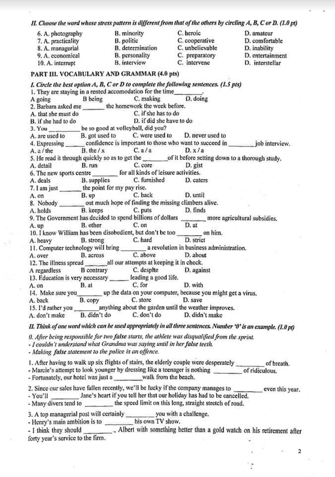 Đề thi thử vào 10- THPT chuyên Sư phạm môn Tiếng Anh năm 2025 lần 1
