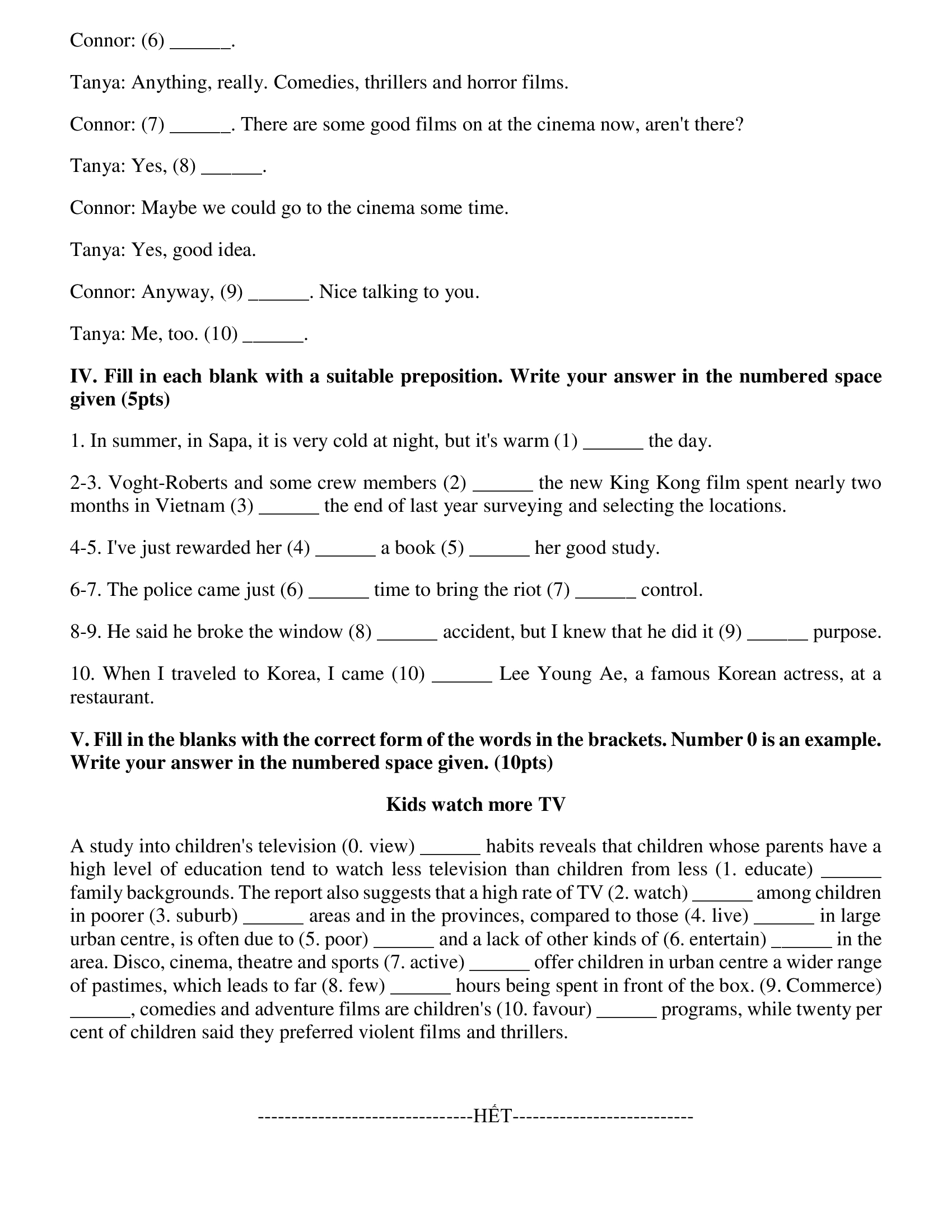 Đề thi thử vào 10 THPT môn Tiếng Anh theo CT GDPT 2018- Trường Đại học Ngoại Ngữ