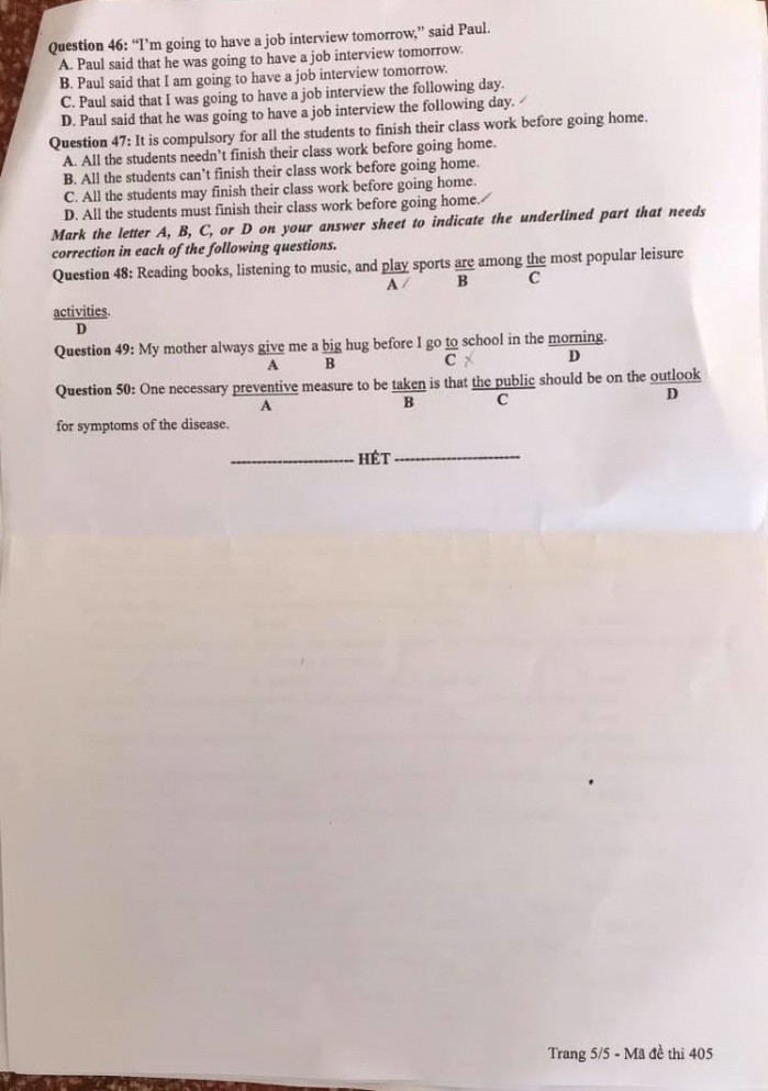 Đề thi tốt nghiệp THPT môn Tiếng Anh năm 2020