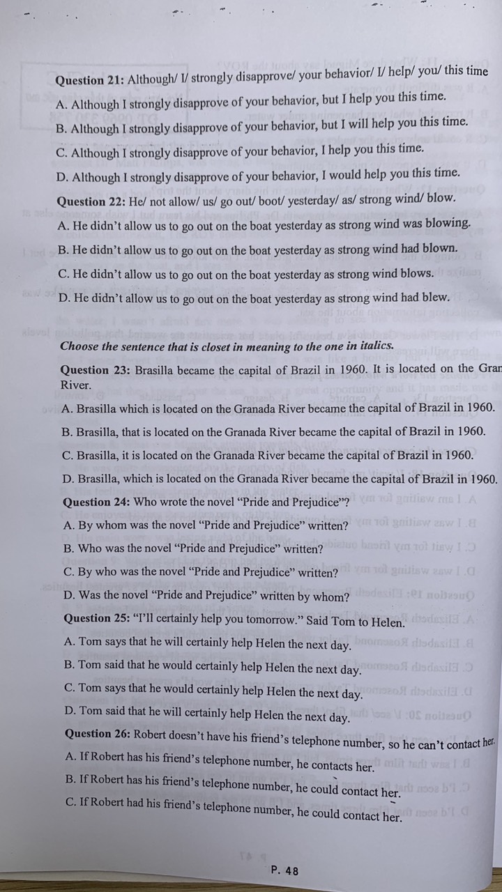 Đề thi tuyển sinh vào Trường THPT CHUYÊN và đáp án môn Tiếng Anh ( dành cho mọi thí sinh ) Trường Đại học Sư phạm Hà Nội năm 2015