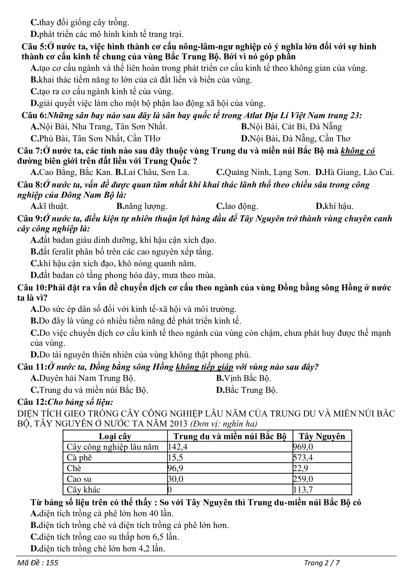 Đề kiểm tra học kì II môn Địa Lý lớp 12 Trường THPT Phan Bội Châu tỉnh Ninh Thuận năm 2019
