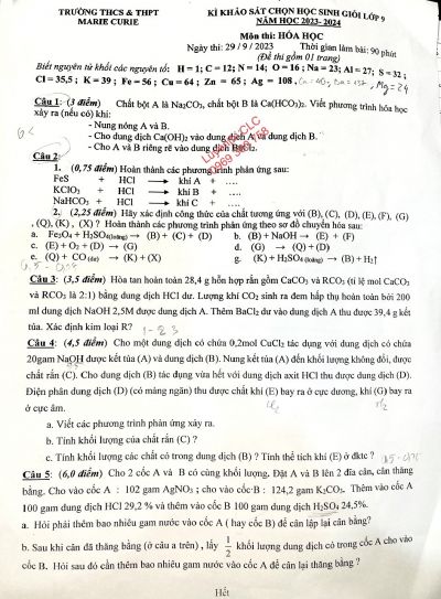 Đề thi HSG môn Hóa Học lớp 9 - Vòng 1 huyện Chương Mỹ, Hà Nội năm 2023