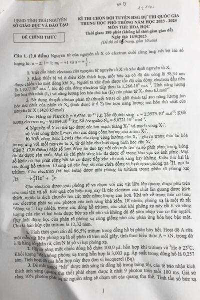 Đề thi chọn đội tuyển dự thi chọn HSG Quốc Gia môn Hóa Học tỉnh Quảng Ngãi năm 2023