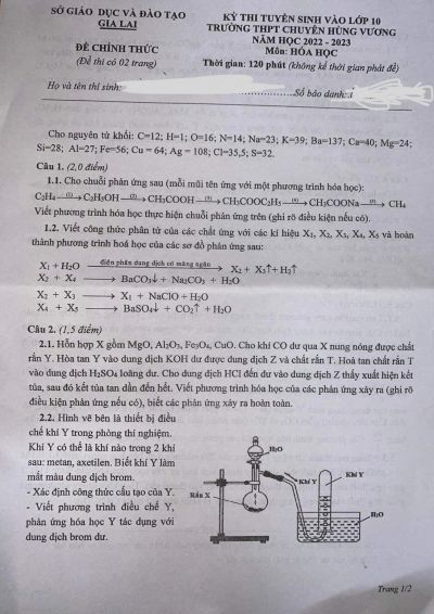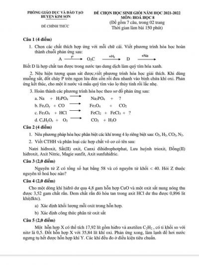 Đề thi chọn đội tuyển HSG môn Hóa Học lớp 9 vòng 1 Trường THPT CHUYÊN Hà Nội Amsterdam năm 2022