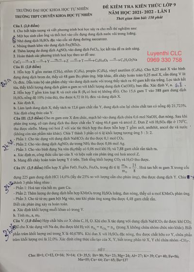 Đề thi tuyển sinh vào lớp 10 môn Hóa Học Trường Phổ thông năng khiếu Đại học Quốc gia Thành phố Hồ Chí Minh năm 2022