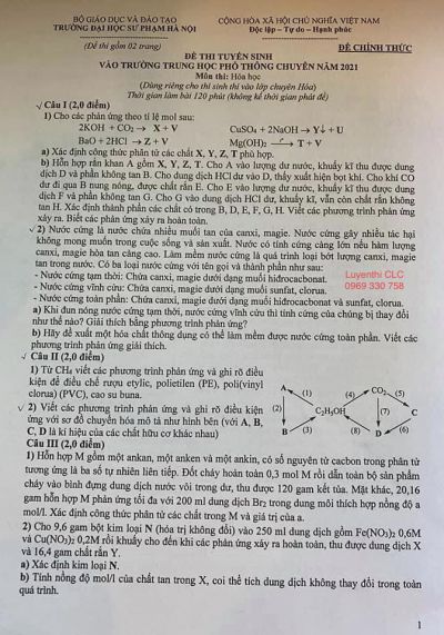 Tổng hợp các câu hỏi đề minh họa môn Hóa Học năm 2021