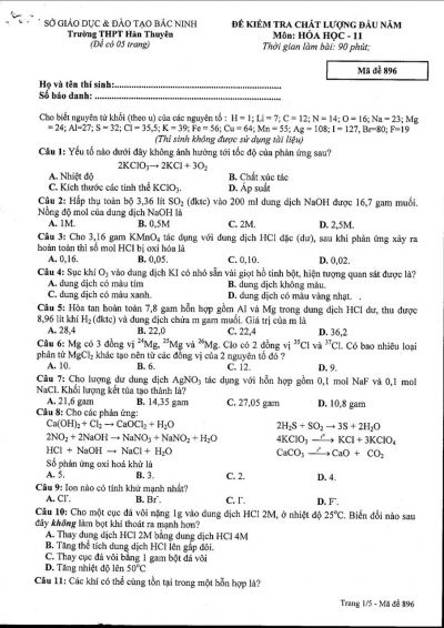 Đề thi thử THPT Quốc Gia môn Hóa Học năm 2021