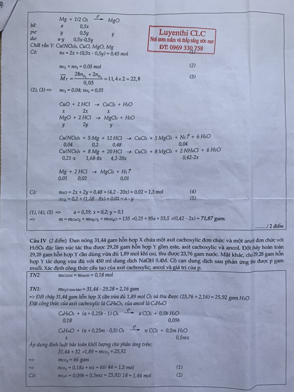 Đề kiểm tra kiến thức và đáp án môn Hóa Học lớp 9 Trường THPT CHUYÊN KHTN
