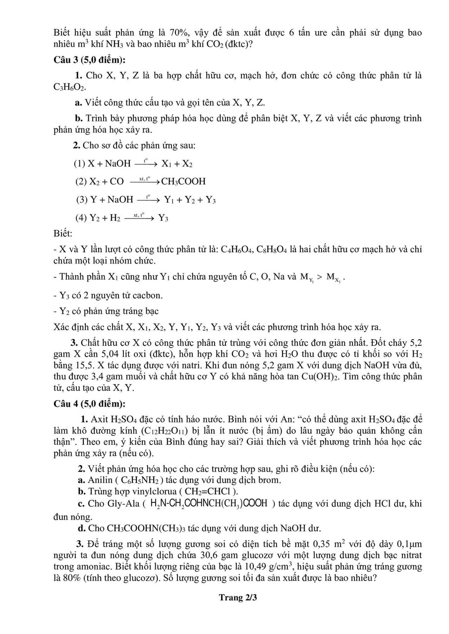 Đề thi THPT chuyên môn Hóa (chuyên) tỉnh Thái Bình năm 2025-2026