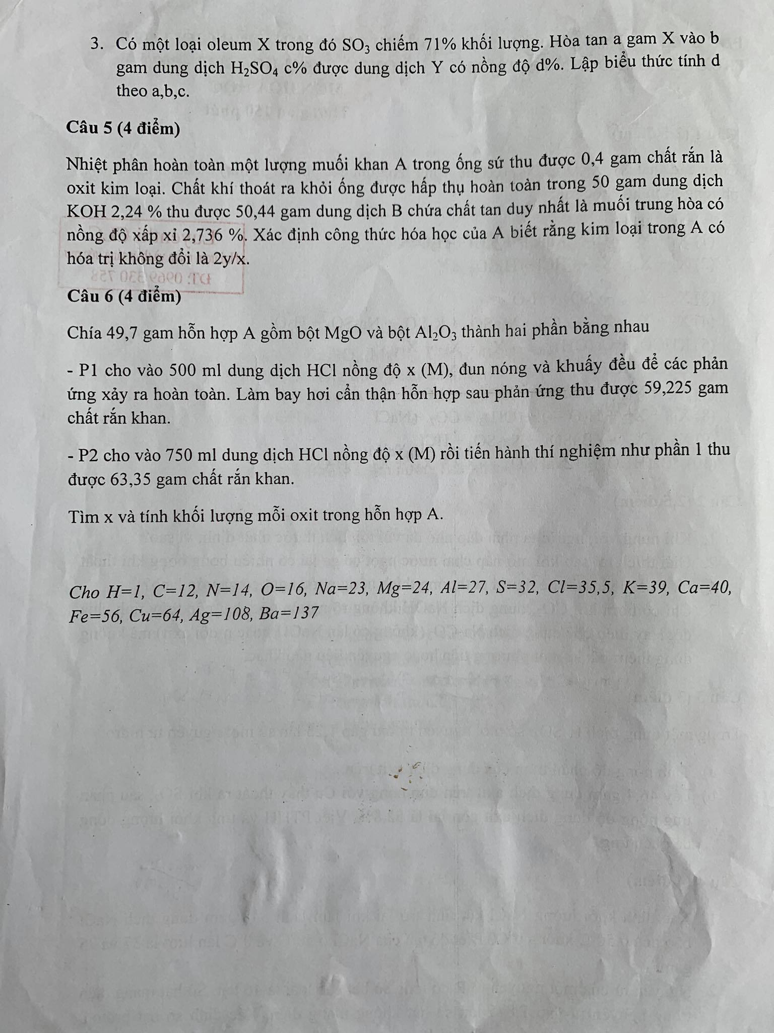 Đề thi HSG môn HOÁ HỌC - Cấp trường (Giảng Võ, Nguyễn Tri Phương...), cấp quận (Cầu giấy, Nam Từ Liêm...)