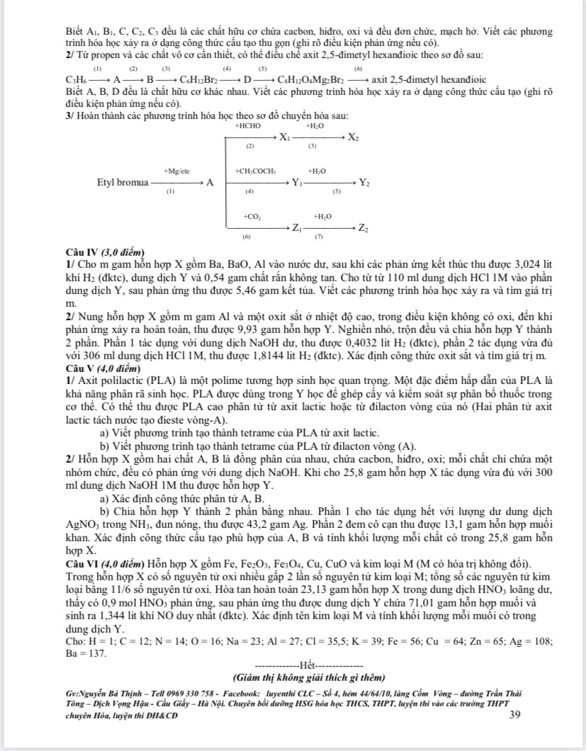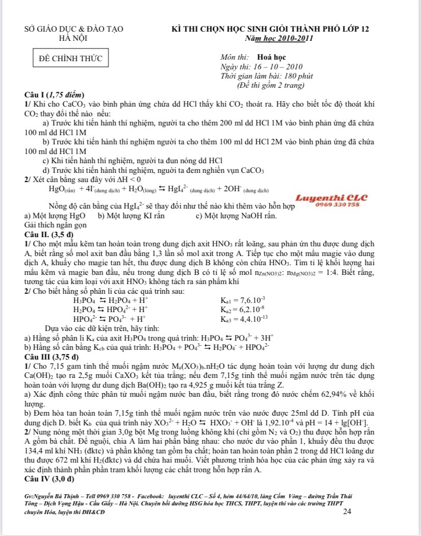Tuyển tập các đề thi Hóa Học tại Hà Nội