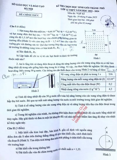 Đề thi chọn HSG và đáp án môn Vật Lí lớp 9 quận Hai Bà Trưng, Hà Nội năm 2022