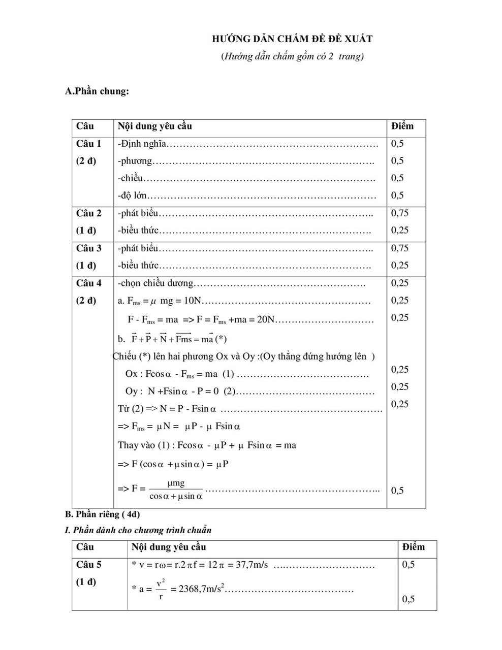 Đề kiểm tra chất lượng học kì I môn Vật lí lớp 10 và đáp án