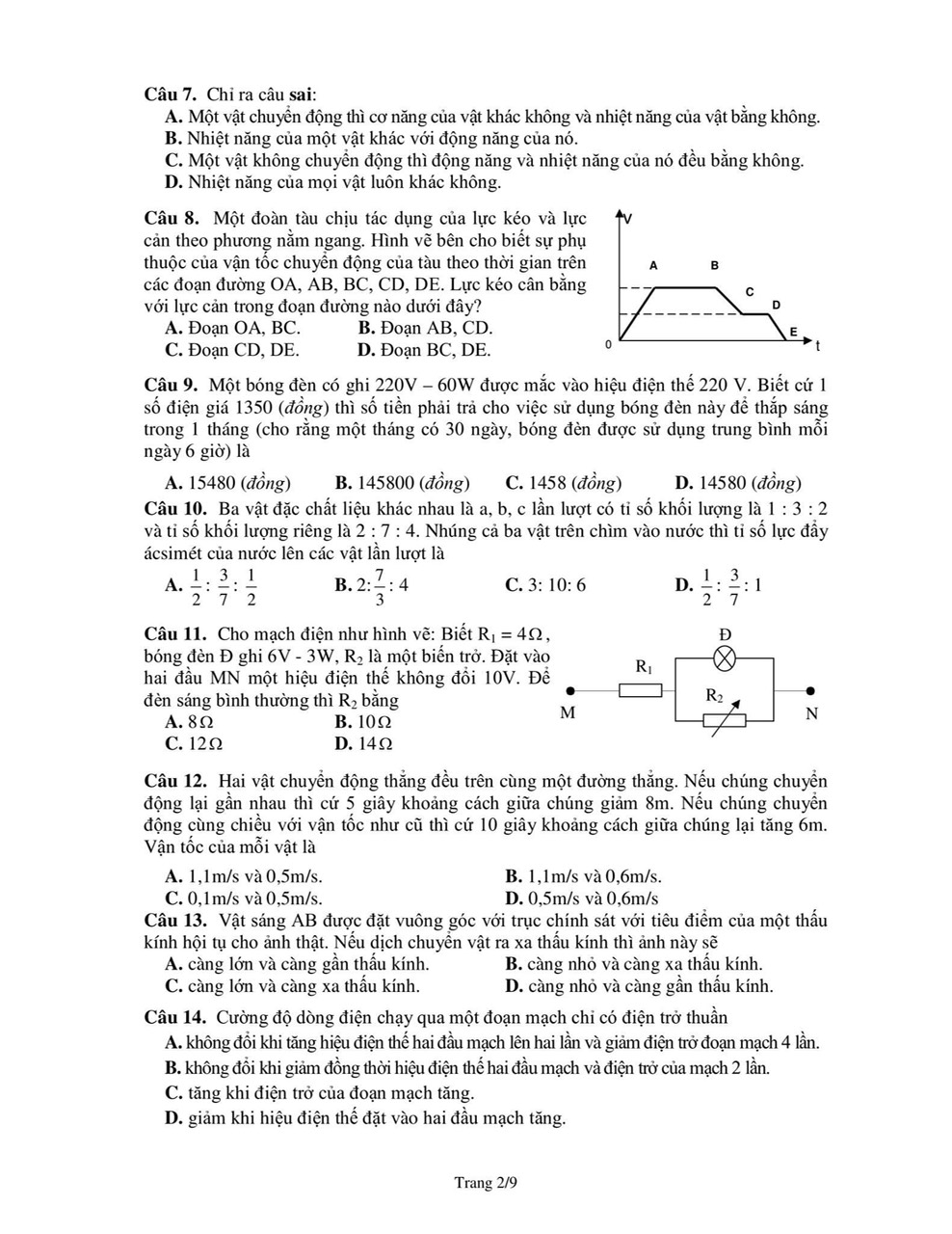 Đề thi chọn HSG lớp 9 môn KHTN ( Vật lý) năm 2024-2025