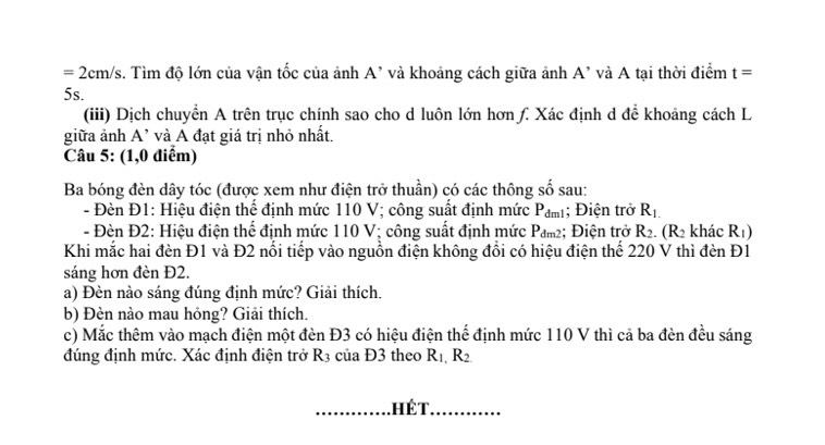 Đề thi thử vào 10 môn Vật lý THPT chuyên ĐHSP Hà Nội năm 2024- lần III