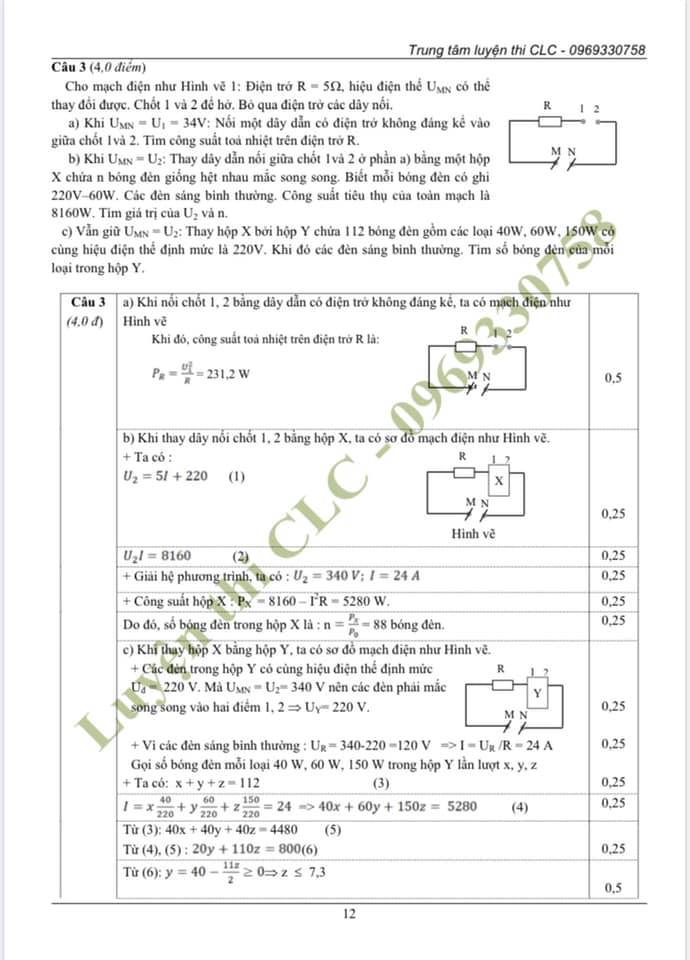 Đề thi và đáp án môn Lý - tuyển sinh vào lớp 10 THPT chuyên Bắc Ninh năm 2018- 2019