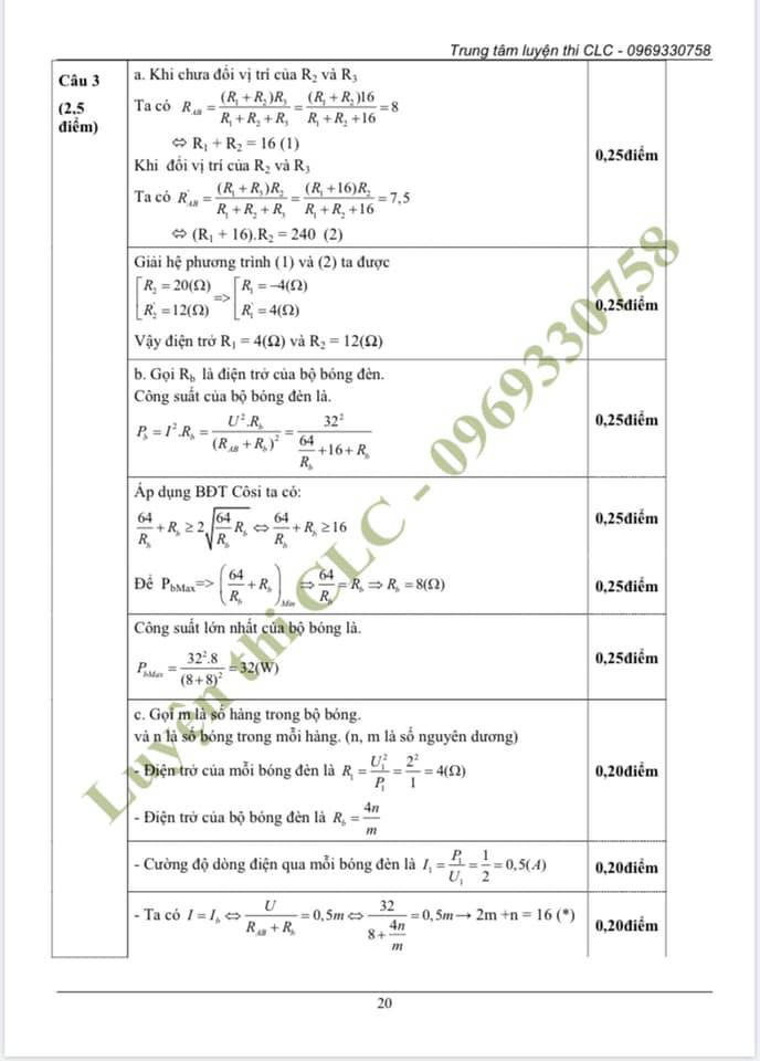 Đề thi và đáp án môn Lý - tuyển sinh vào lớp 10 THPT chuyên Vĩnh Phúc năm 2018 - 2019