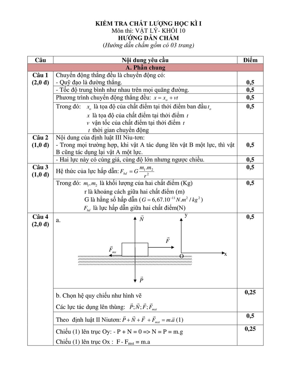 Một số đề kiểm tra chất lượng học kì I môn Vật lý lớp 10 và đáp án tham khảo
