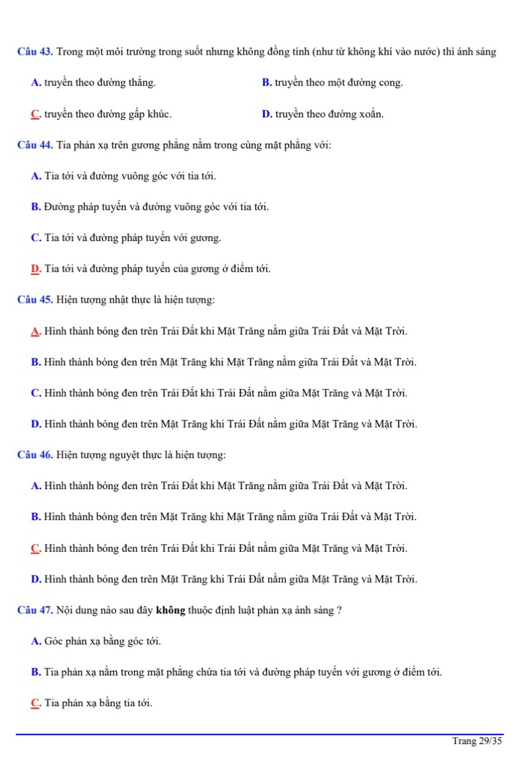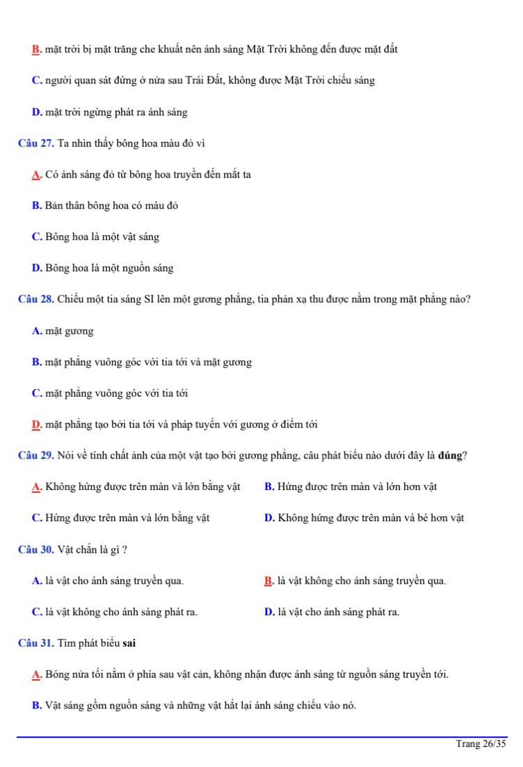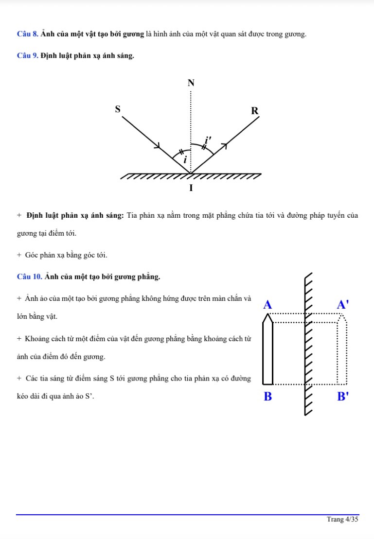 Một số nội dung ôn tập môn Vật Lý lớp 7 - Chương 1 - Quang học
