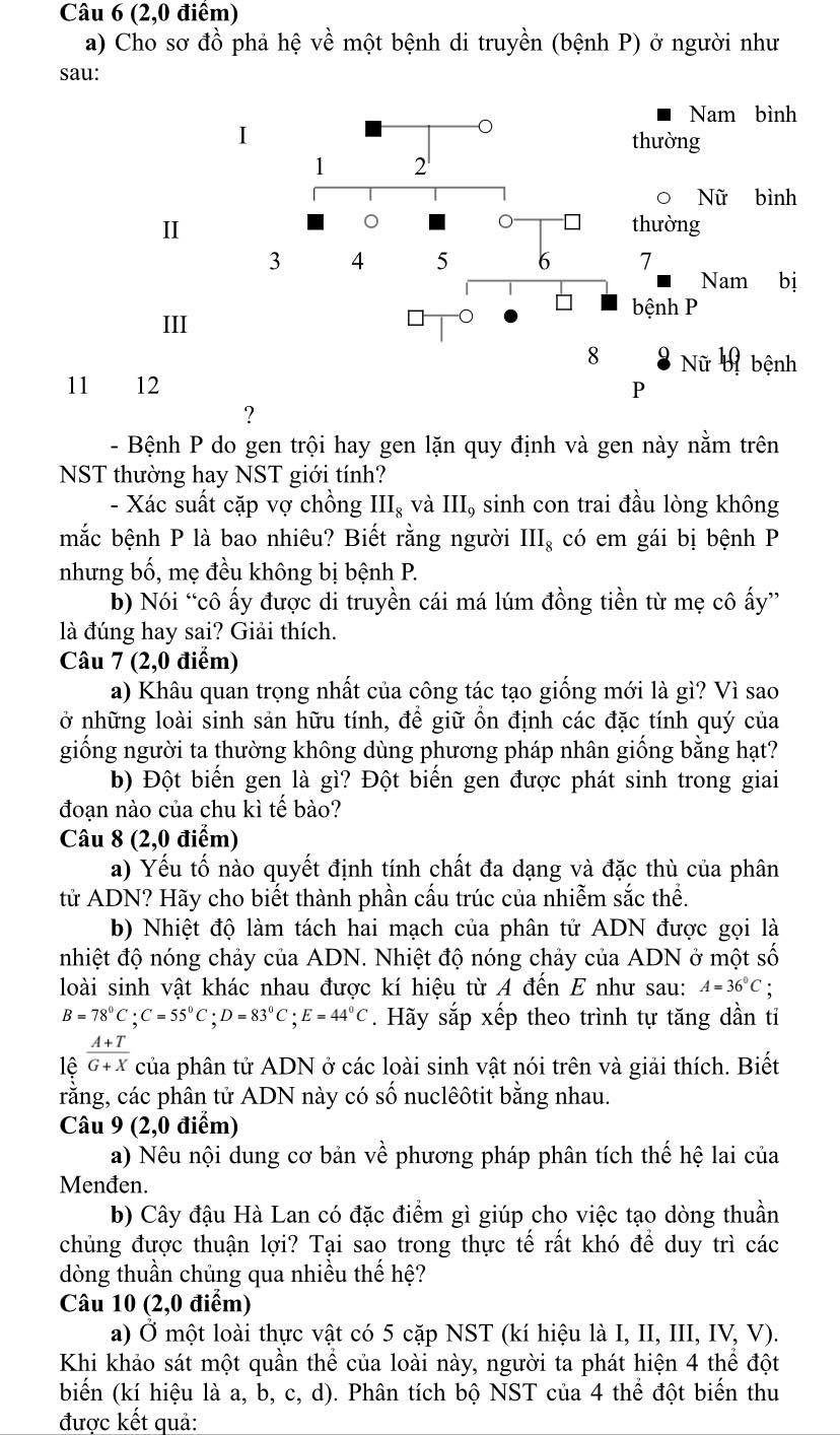 Đề thi vào lớp 10 THPT chuyên môn Sinh học sở GD&ĐT TP Hà Nội năm 2024-2025