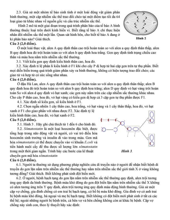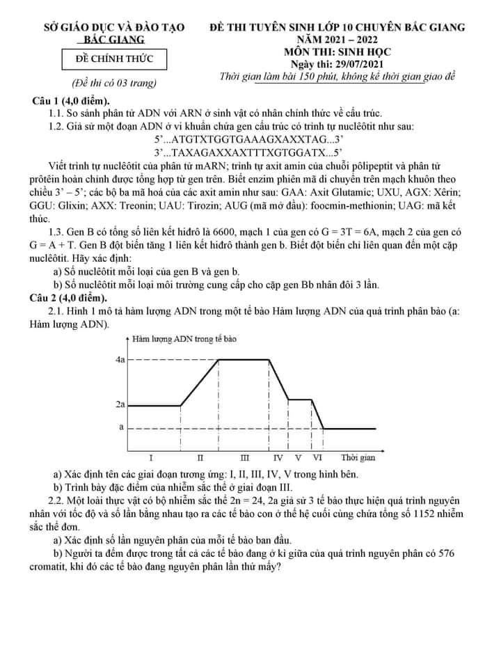 Đề thi tuyển sinh vào lớp 10 THPT môn Sinh học Trường Chuyên Bắc Giang năm 2021