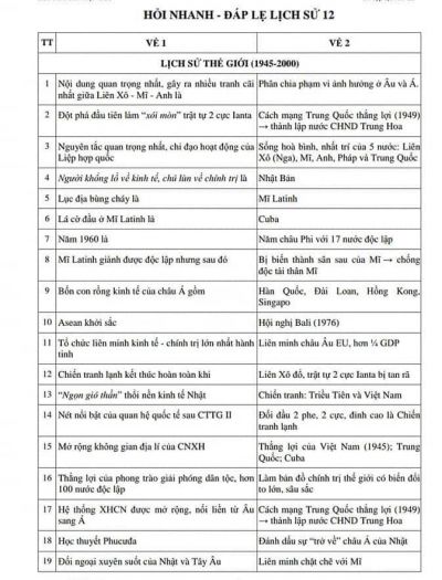 Hỏi nhanh - đáp lẹ môn Lịch sử 12