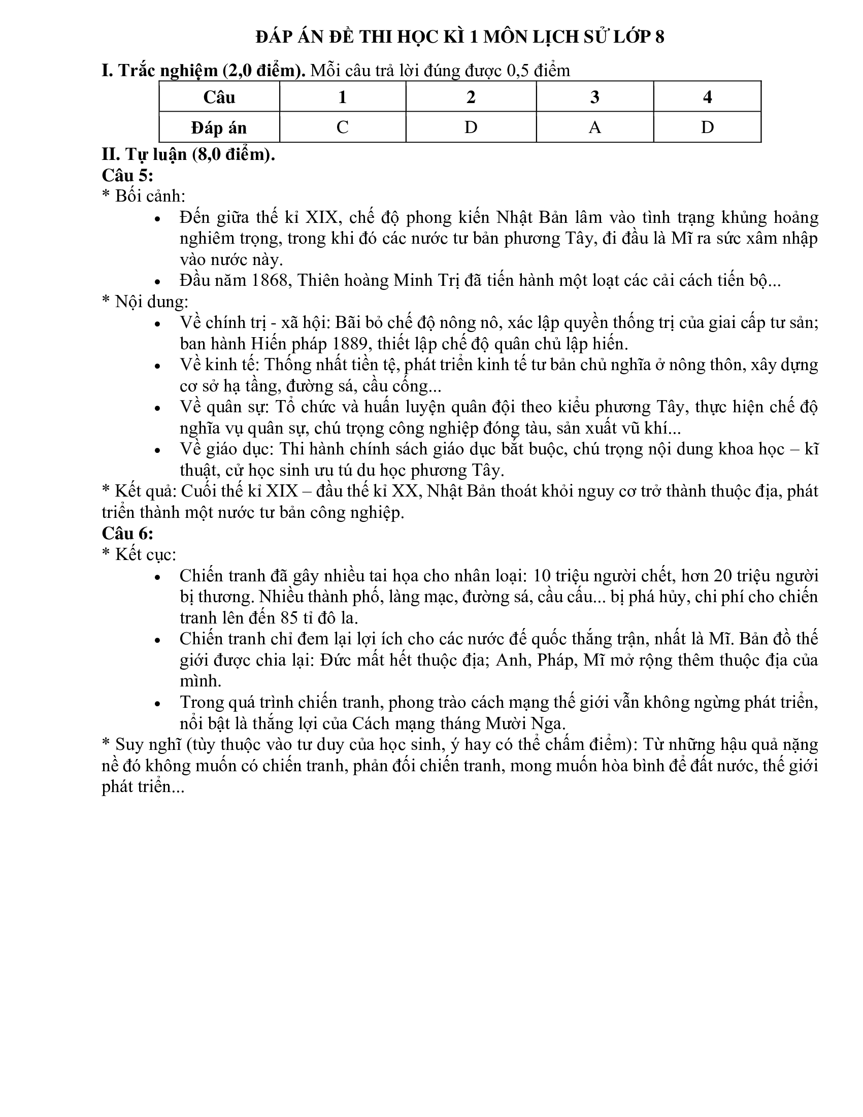 Đề kiểm tra học kì I môn Lịch Sử lớp 8 huyện Vĩnh Tường tỉnh Vĩnh Phúc năm 2016