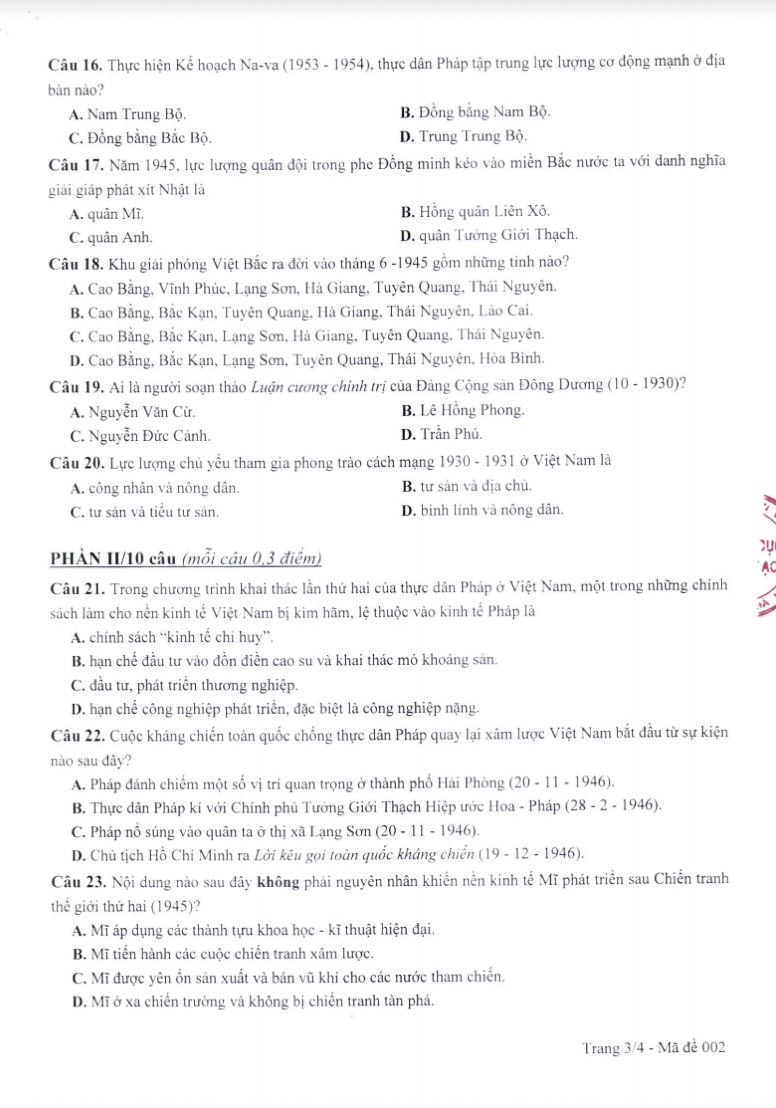 Đề thi tuyển sinh vào lớp 10 THPT và đáp án môn Lịch Sử tại Hà Nội năm 2021