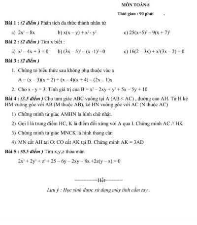 Đề kiểm tra học kì I môn Toán lớp 7 Trường THCS Xuân Đỉnh, quận Bắc Từ Liêm, Hà Nội năm 2019