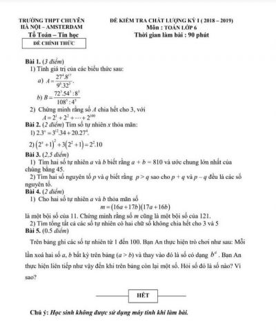 Đề kiểm tra học kì I môn Toán lớp 7 Trường THPT CHUYÊN Amsterdam năm 2010