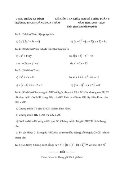 Đề kiểm tra giữa học kì I môn Toán lớp 9 - đề số 2, Trường THCS Thanh Xuân năm 2020