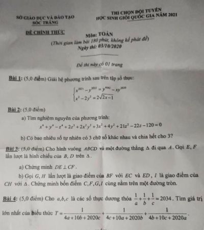 Đề tham khảo đề tuyển sinh vào lớp 10 THPT môn Toán Thành phố Hồ Chí Minh năm 2020