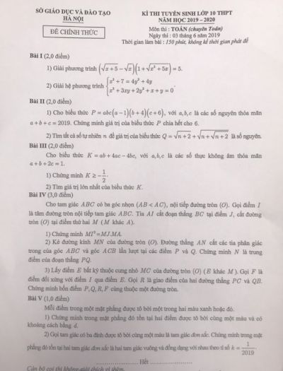 Đề thi tuyển sinh vào lớp 10 THPT môn Toán thành phố Hồ Chí Minh năm 2019