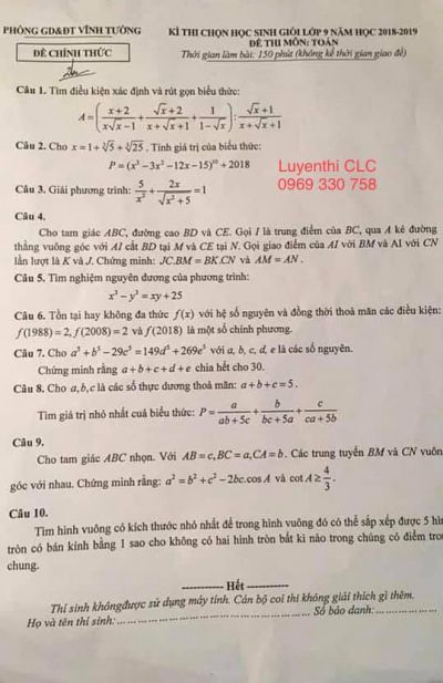 THÂN GỬI CÁC BẠN HỌC SINH LỚP 9 CHUẨN BỊ THI VÀO LỚP 10 THPT CHUYÊN