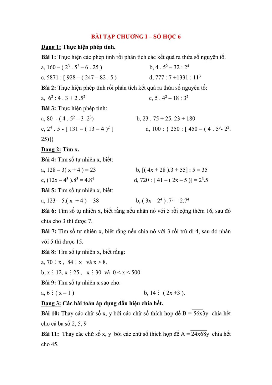 Bài tập chương I - Số học 6