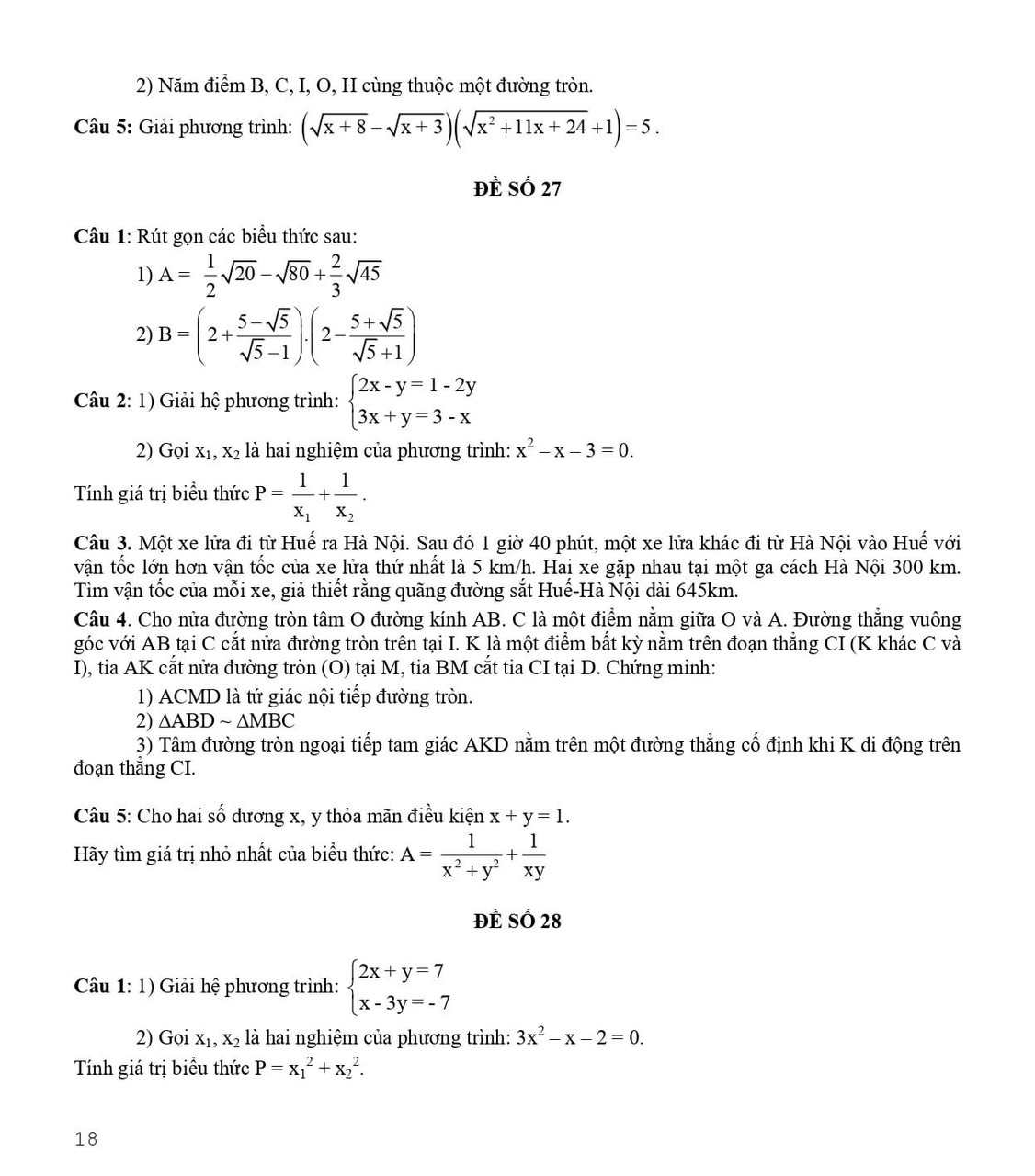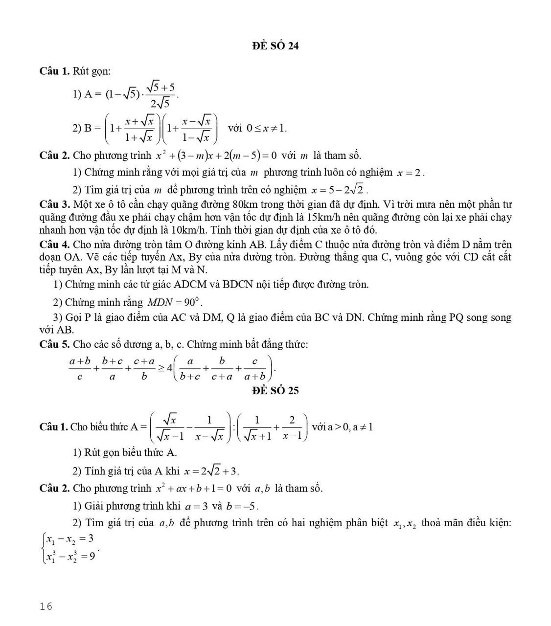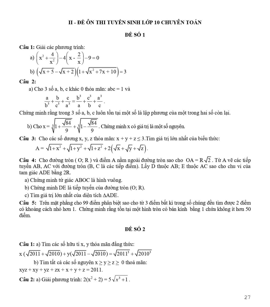 Bộ đề ôn thi tuyển sinh vào lớp 10 THPT và THPT Chuyên môn Toán năm 2023