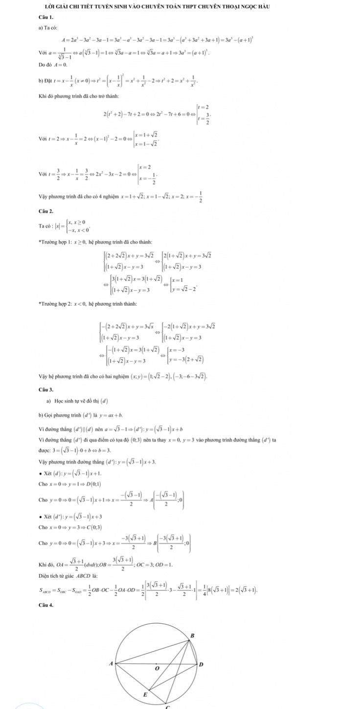 Đề thi tuyển sinh vào lớp 10 THPT CHUYÊN và đáp án môn Toán tỉnh An Giang năm 2020