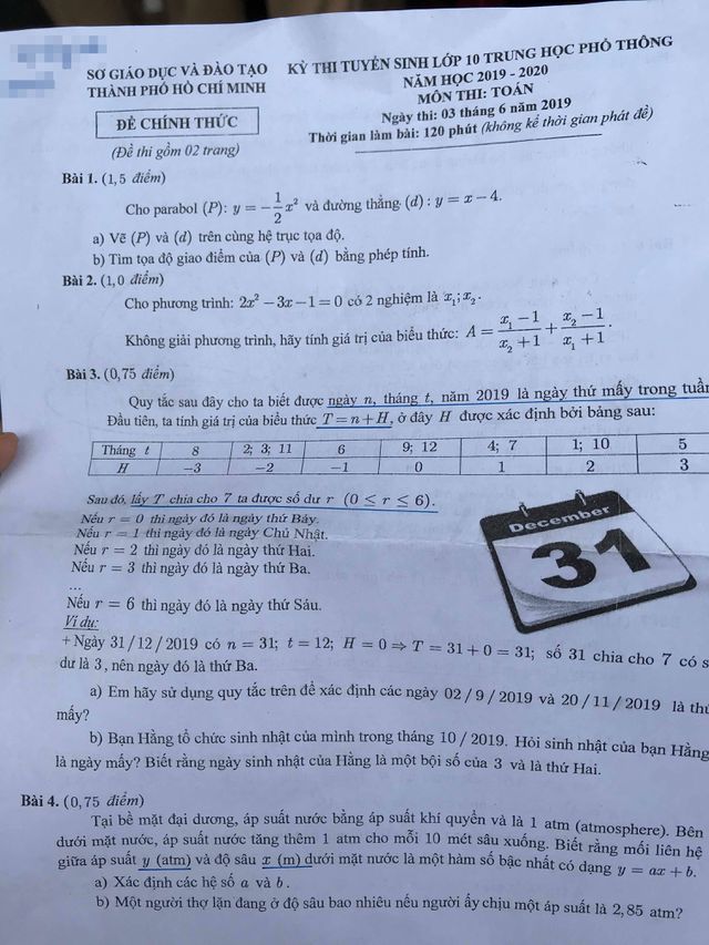 Đề thi vào lớp 10 môn toán - Sở Giáo dục TP Hồ Chí Minh năm 2025