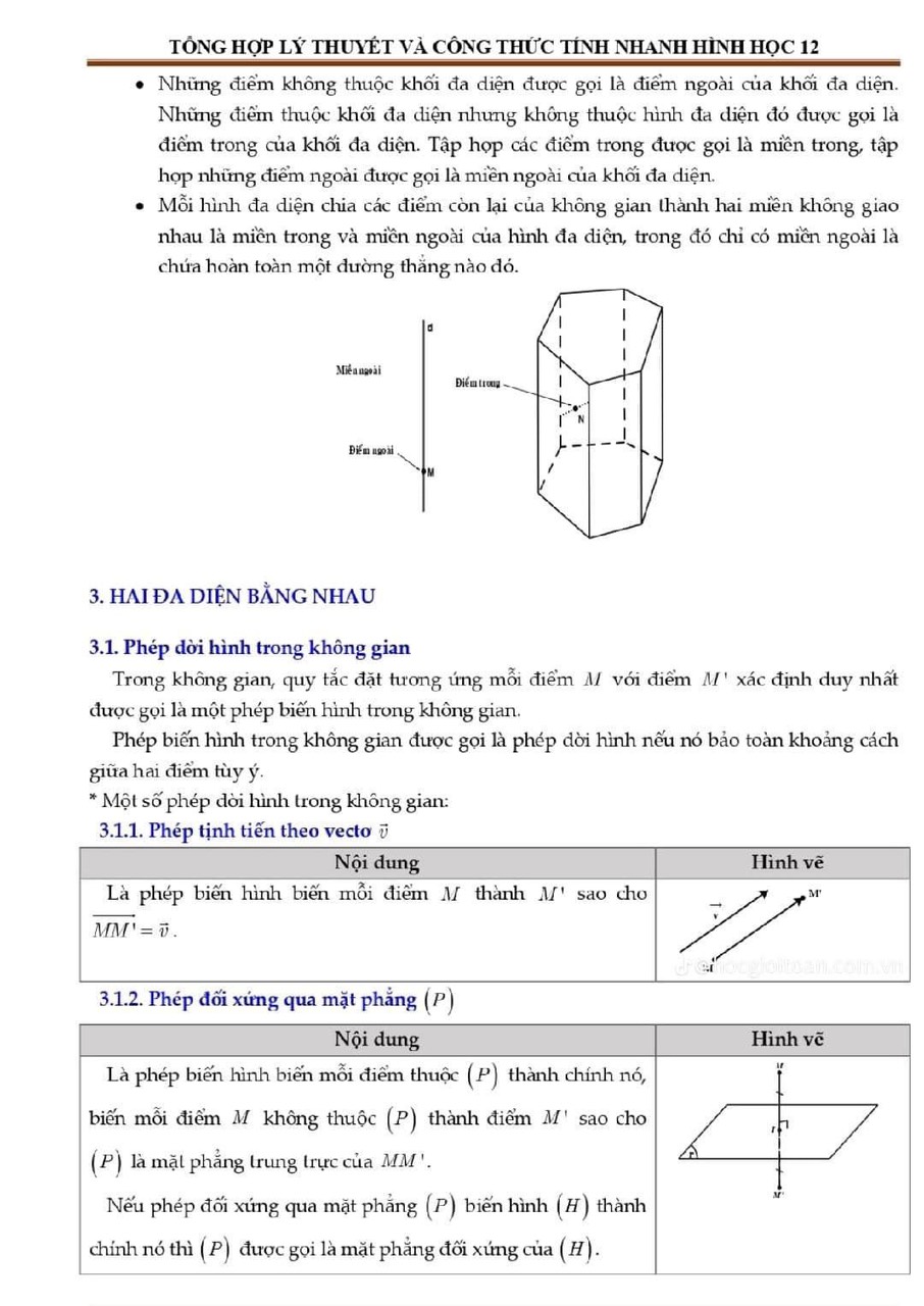 Tổng hợp lý thuyết và công thức tính nhanh hình học 12