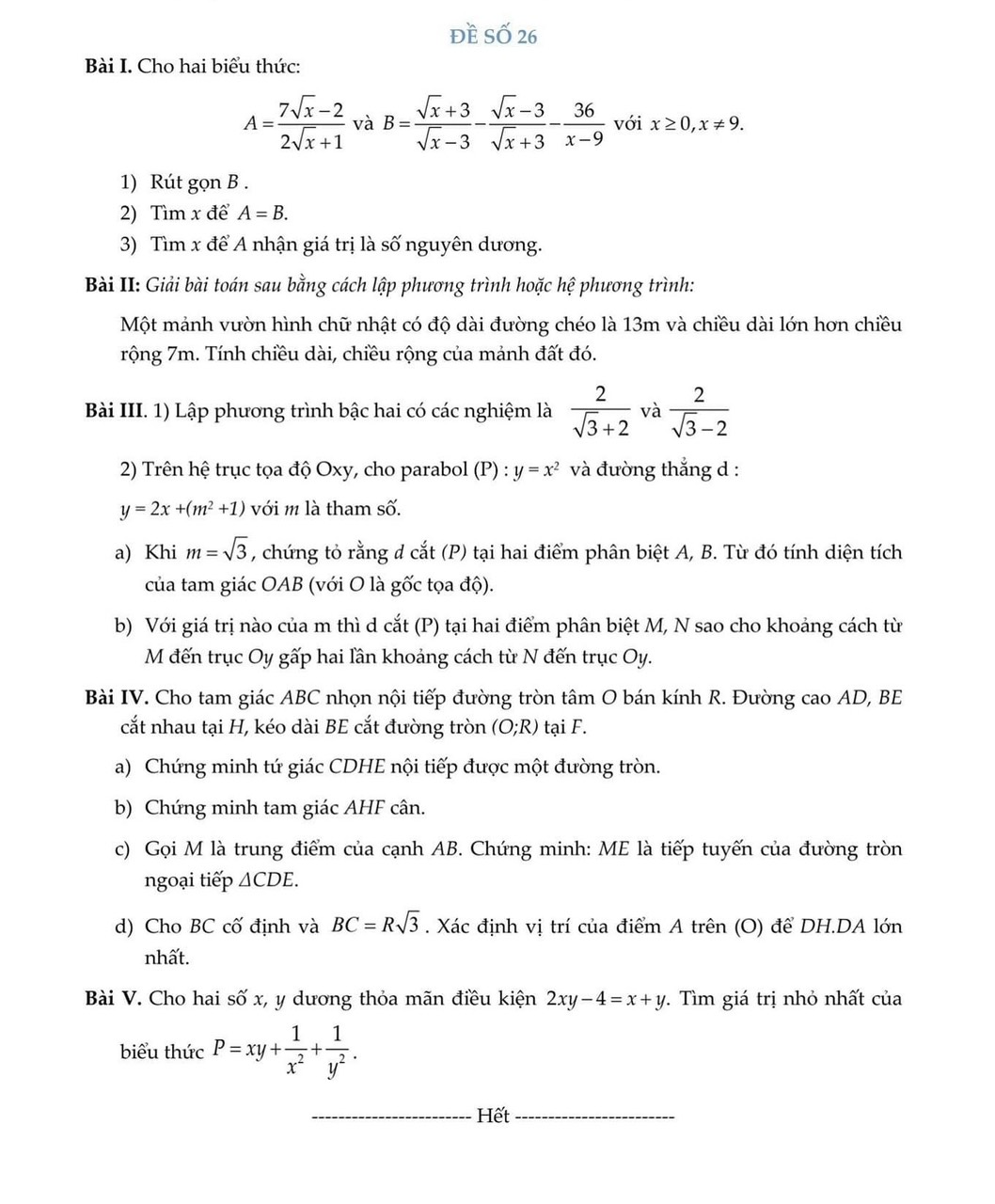 Đề thi vào lớp 10 môn toán - Sở Giáo dục TP Hồ Chí Minh năm 2025