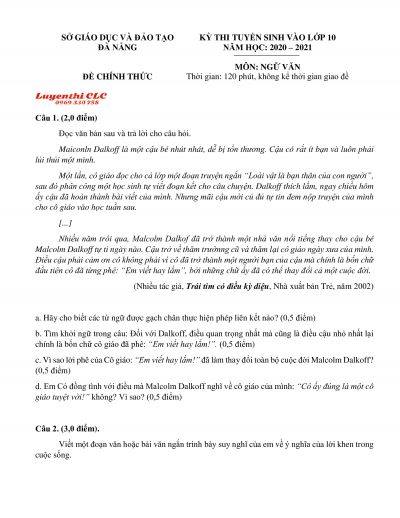 Đề thi thử tốt nghiệp THPT Quốc Gia môn Ngữ Văn lần 1 Trường THPT CHUYÊN tỉnh Bắc Ninh năm 2021