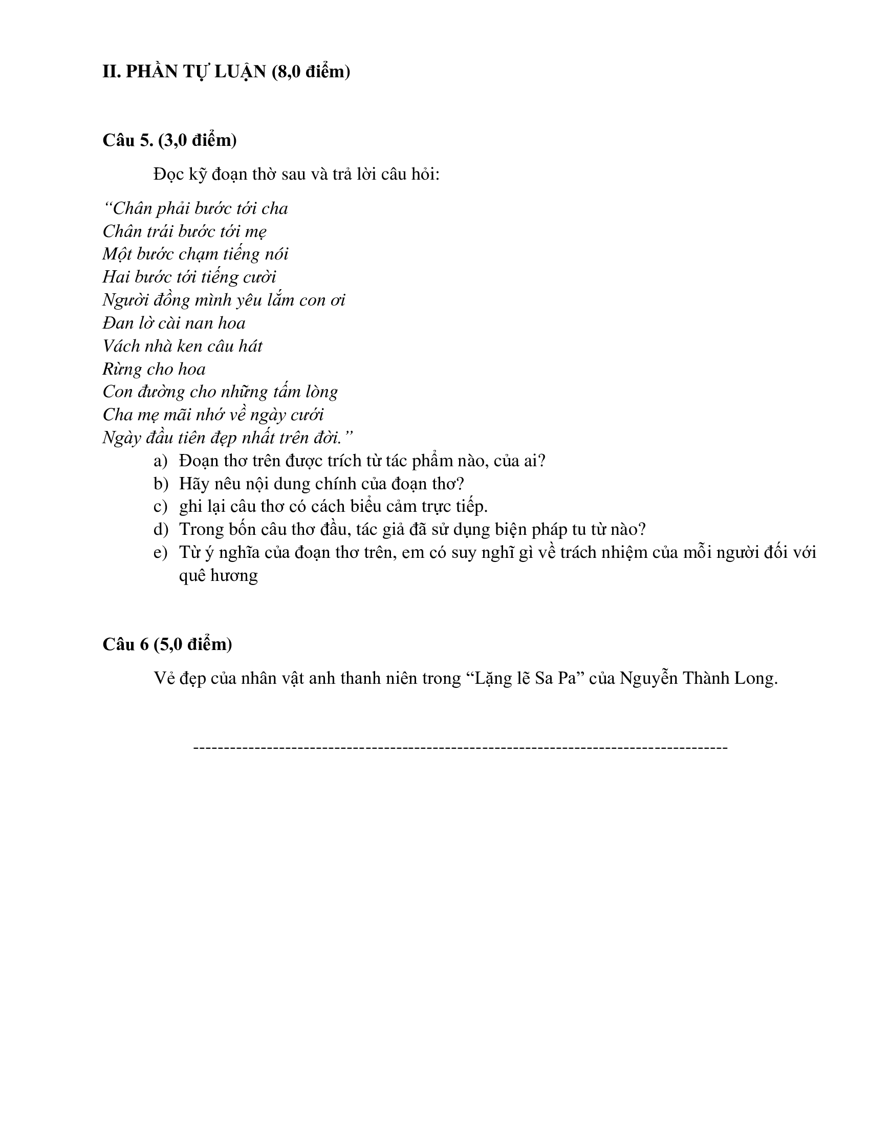 Đề thi tuyển sinh vào lớp 10 môn Văn (chung)- THPT Chuyên Khoa học xã hội và nhân văn năm 2025